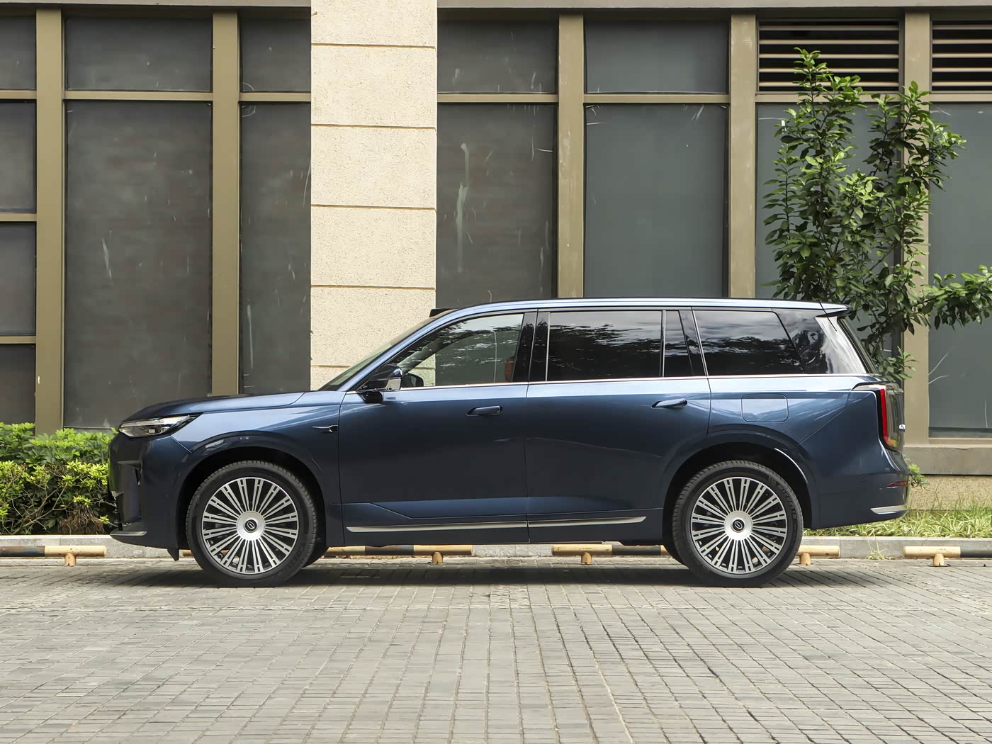 再来看车身侧面部分钱盈配,5060mm车长与2930mm轴距赋予车身修长轮廓,悬浮式车顶搭配隐藏式门把手,风阻系数得到了优化。平直腰线从前灯延伸至车尾,配合B/C柱黑化处理,形成视觉连贯性。侧窗亮银色镀铬饰条与20英寸米其林轮胎(顶配21英寸)彰显旗舰质感。车身采用高强度钢占比达68%的笼式结构,60cm交叉轴测试中仍可电动开合尾门,印证车身刚性。